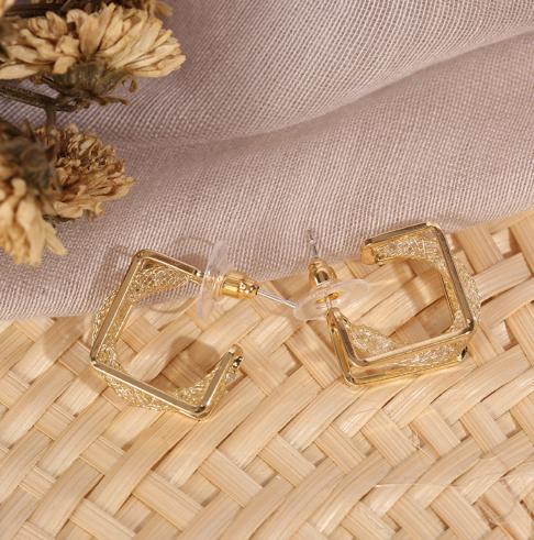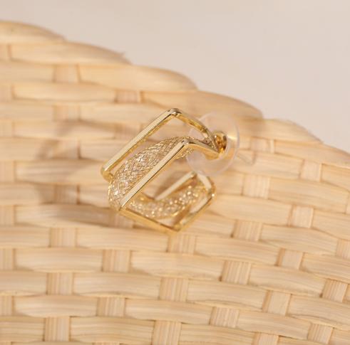 • 2021 mới bông tai hình vuông nhỏ rỗng dây vàng bện bông tai khí chất thiết kế ba lớp Bông tai Nhật Bản và Hàn Quốc