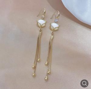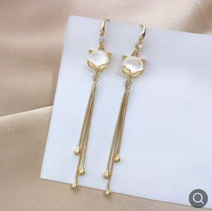 Khuyên tai s925 với đính đá hồ ly với dáng dài sang trọng