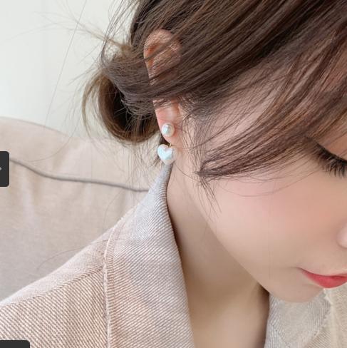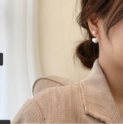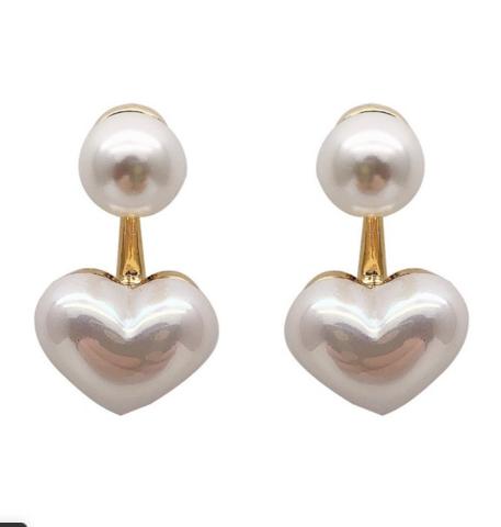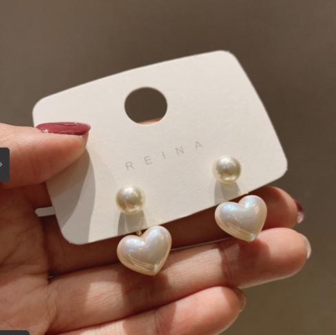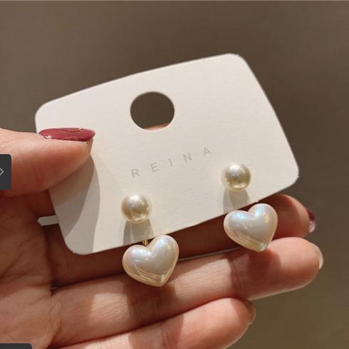 bông tai đơn giản với ngọc trai trái tim nhỏ xinh toát lên sự nữ tính