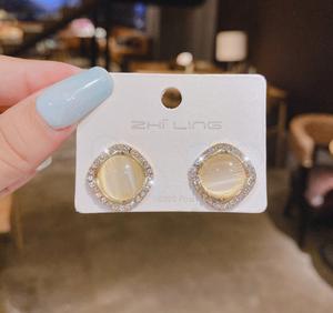 • 925 kim bạc Hàn Quốc Baroque retro hoa tai nhỏ tinh tế hoa tai opal nữ trang sức tai cao cấp