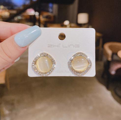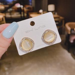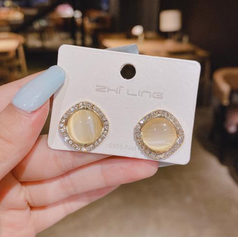 925 kim bạc Hàn Quốc Baroque retro hoa tai nhỏ tinh tế hoa tai opal nữ trang sức tai cao cấp