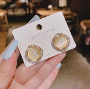 2021 mới hoa tai opal hợp thời trang tai trang sức khí chất hàn quốc thời trang siêu flash tua hoa tai dài móc tai