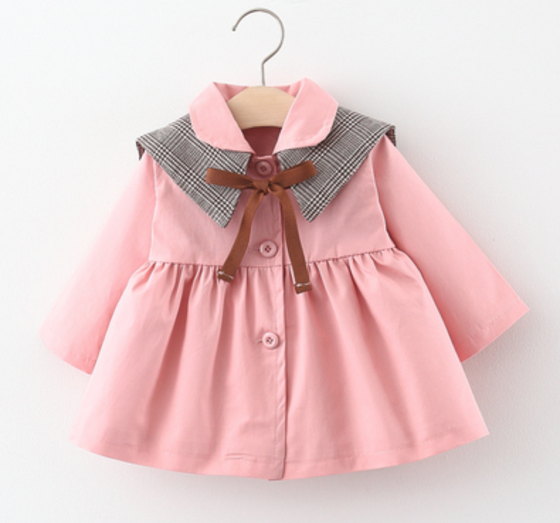 Áo khoác babydoll cổ tròn nơ cho bé gái