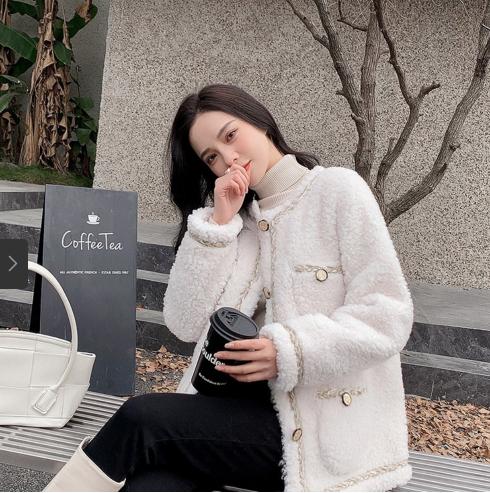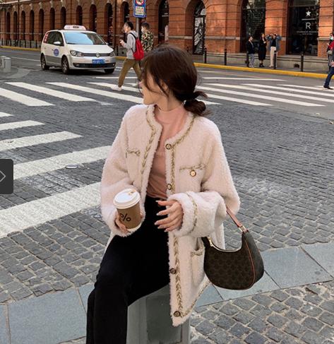 Áo khoác len lông cừu cổ tròn với dáng xuông khoác nhẹ theo phong cách hàn quốc dễ phối đồ và còn siêu ấm áp