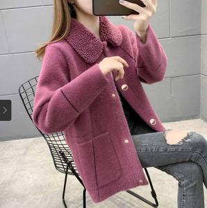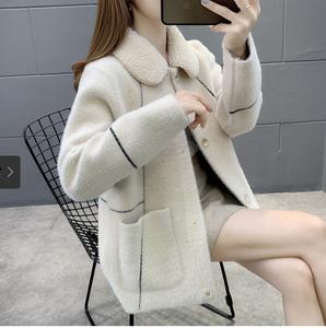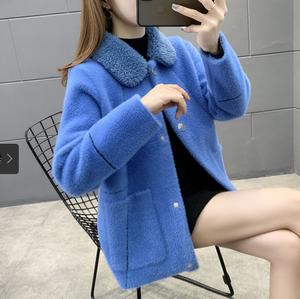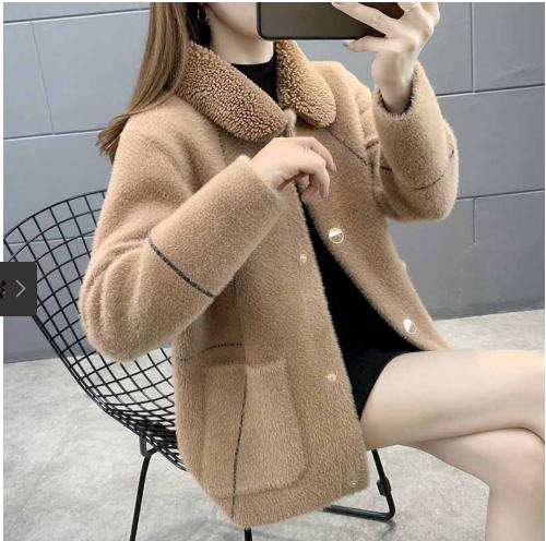 Áo khoác lông cừu nữa 2021 dáng ngắn có cổ với thiết kế đơn giản