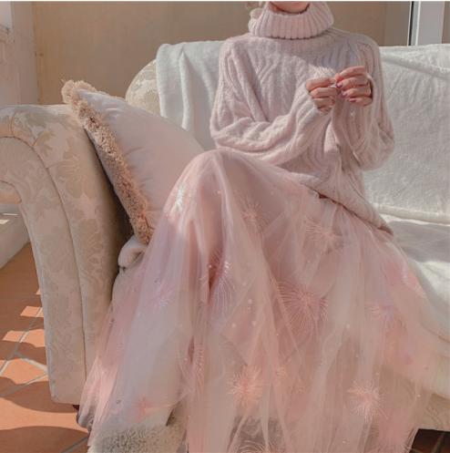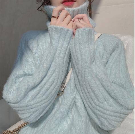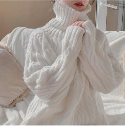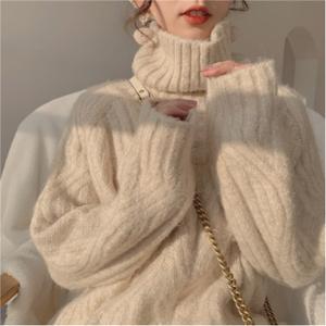 Tên sản phẩm :Áo len cổ lọ nữ rộng ngoài 2021 mùa thu đông mới mùa đông gió lười dày giữa chiều dài gió nhẹ nhàng