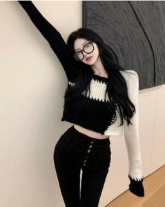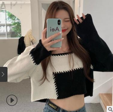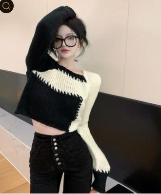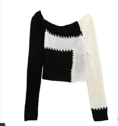 áo len cổ vuông kết hợp 2 màu đen trắng