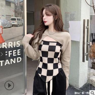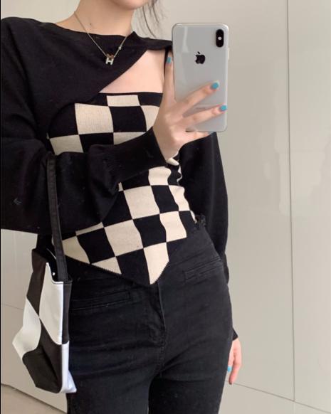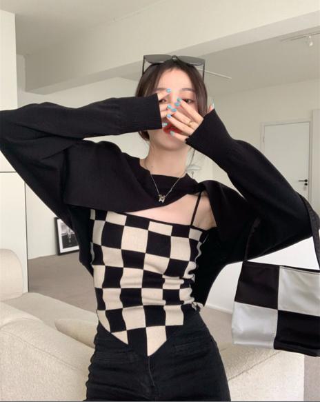 áo len tay dài lửng kết hợp với áo hai dây phong cách hàn quốc