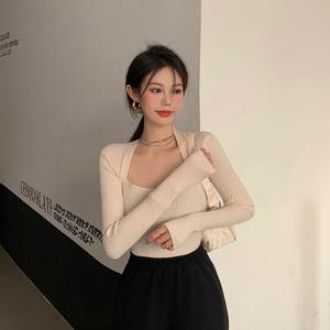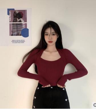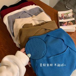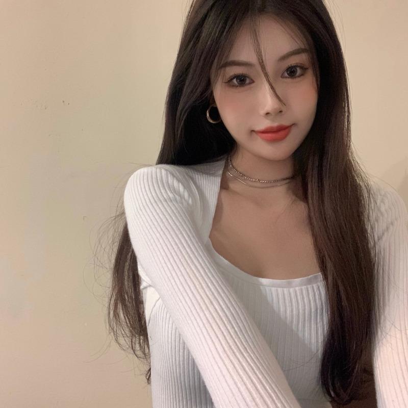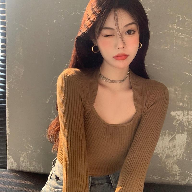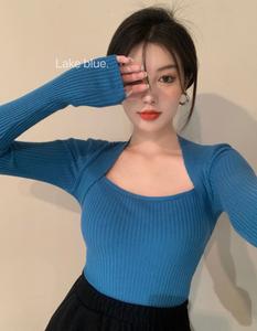 Tên sản phẩm :Áo len dệt kim phụ nữ mùa thu 2021 mới phong cách Pháp cổ điển cổ vuông mỏng màu xanh dài tay từ trên xuống dưới