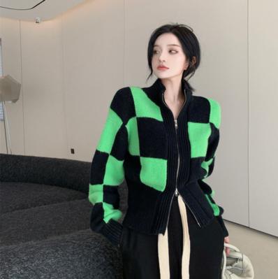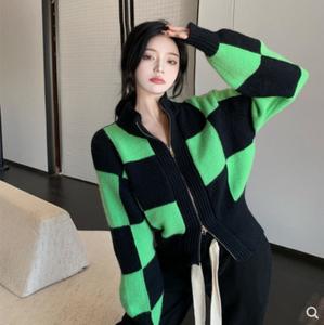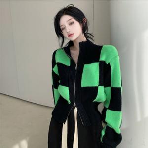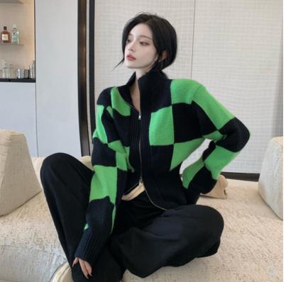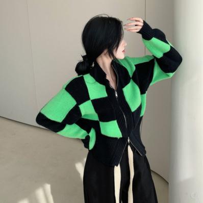 áo len caro pha độc lạ giữa đen và xanh lá cây làm nổi bật
