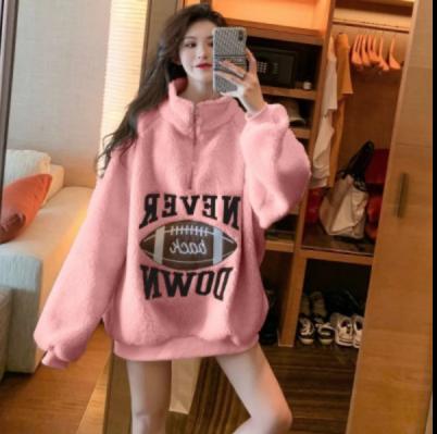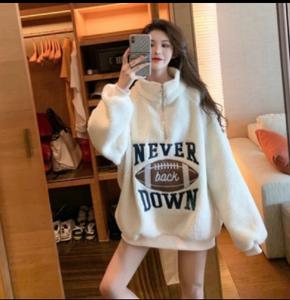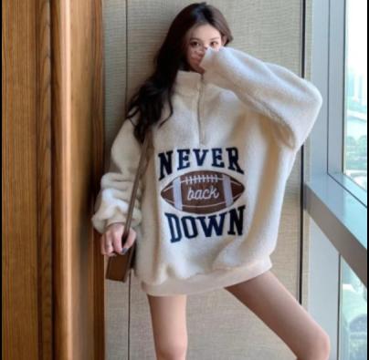 Tên sản phẩm : Áo len lông cừu sang trọng của phụ nữ mùa thu và mùa đông Hàn Quốc phiên bản hoang dã cộng với nhung dày rộng rãi áo khoác học sinh trung niên trong thủy triều