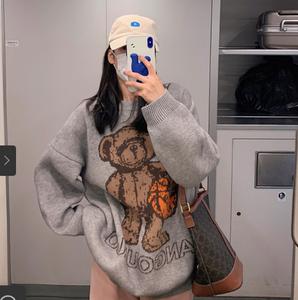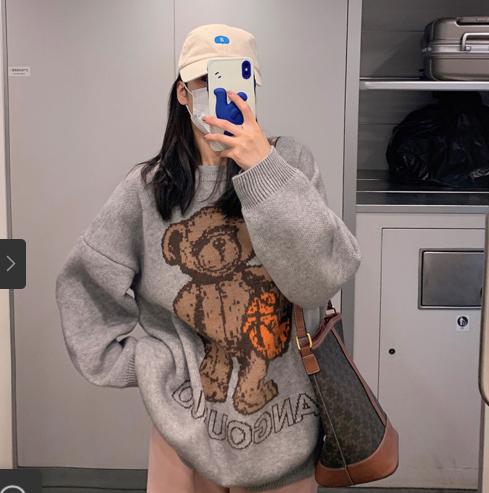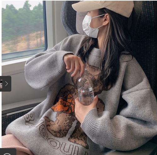-Tên sản phẩm : Áo len nữ màu đỏ lưới thiết kế sense 2021 làn gió lười mới xuân thu phiên bản hàn quốc áo len chui đầu nữ dài dệt kim