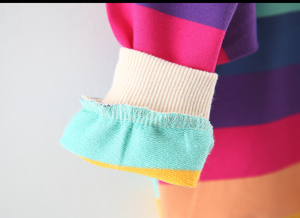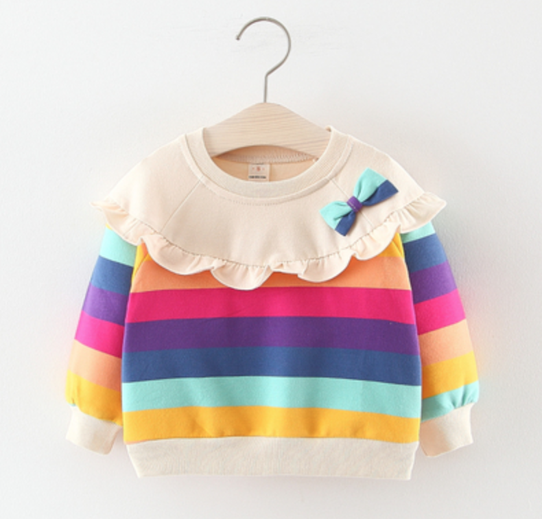 • Tên sản phẩm : Áo nỉ cổ bèo màu sắc cầu vòng cho bé gái