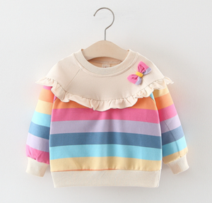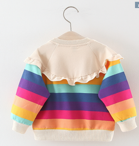 Áo nỉ cổ bèo màu sắc cầu vòng cho bé gái