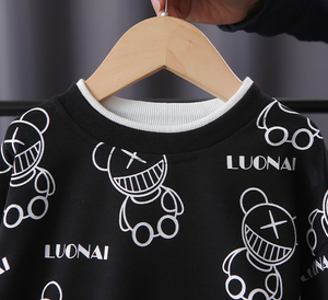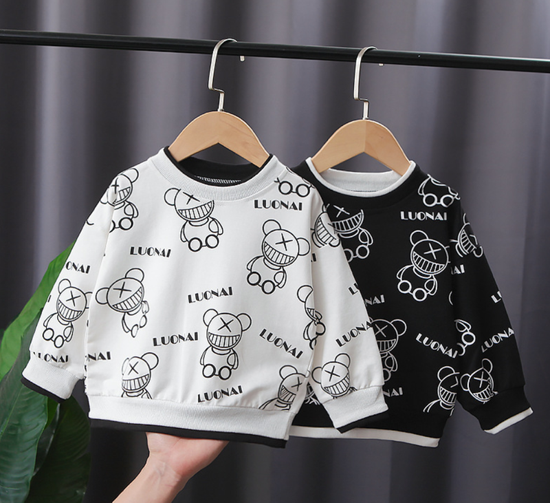 Tên sản phẩm :Áo nỉ thun cotton dài tay in hình hoạ tiết gấu nhỏ cho bé