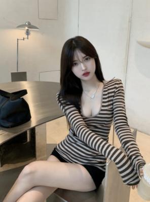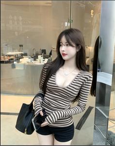 • Áo sơ mi đáy thu đông áo len tinh khiết mong muốn gió 2021 mới cổ chữ v mỏng phù hợp lười biếng áo len dệt kim sọc ngắn trên cùng áo len nữ