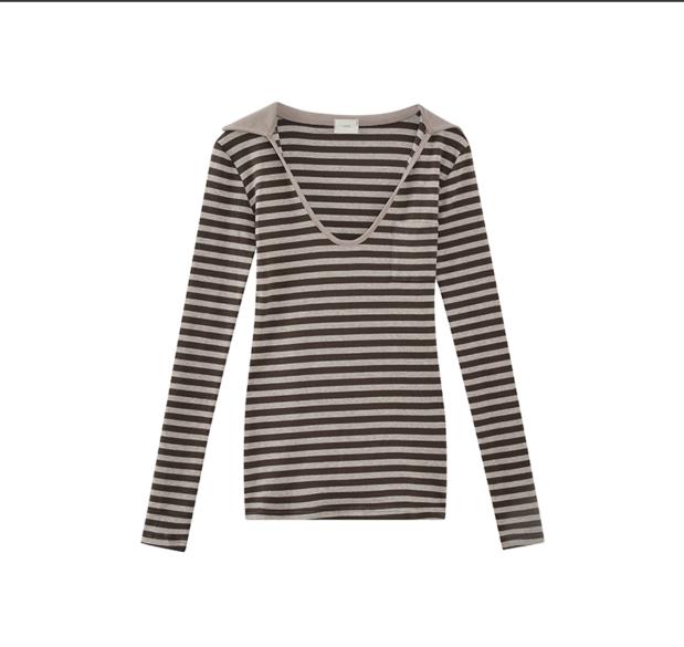 • Mô tả sản phẩm :áo kẻ nâu trắng cổ rộng áo tay dài phiên bản vải mỏng