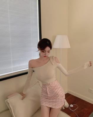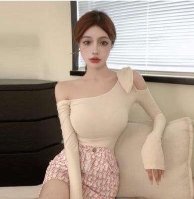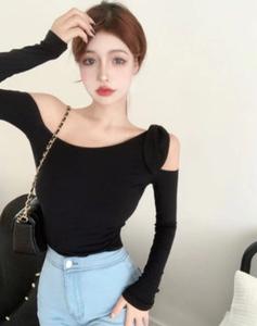 Áo thun lệch vai có nơ ở vai nhẹ nhàng