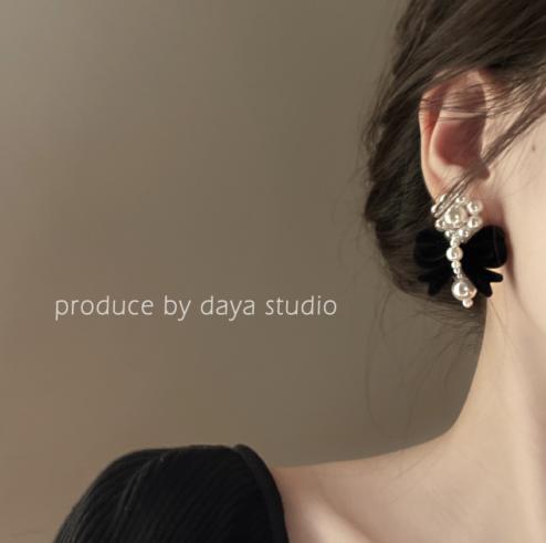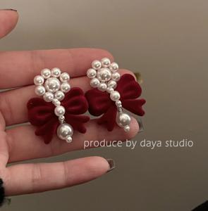 • Bánh nhung đỏ Baroque cổ điển Pháp hoa tai ngọc trai nơ hoa tai nữ tính cao cấp