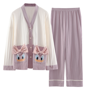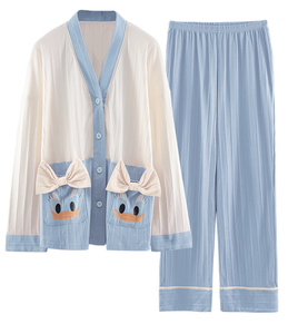 Thông tin sản phẩm Bộ đồ ngủ Cotton của nữ hình con vịt - tay áo dài, cổ áo chữ V