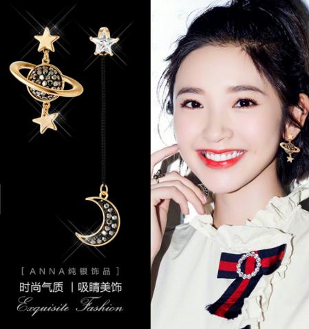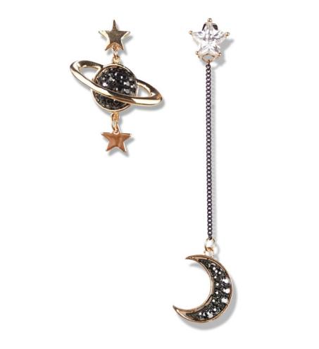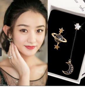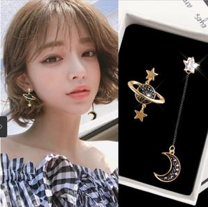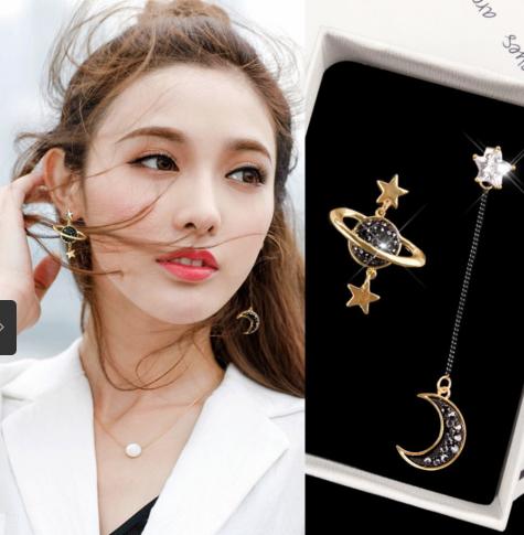 bông tai dài vời ý tưởng về trăng sao 2 bên khác nhau tạo phong cách đặc biệt