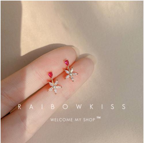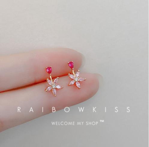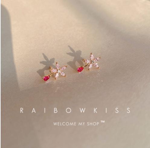 • Bông tai hoa kim cương hồng nữ 2022 mới hợp thời trang niche bông tai hoa nhỏ phiên bản Hàn Quốc bông tai zircon nhỏ