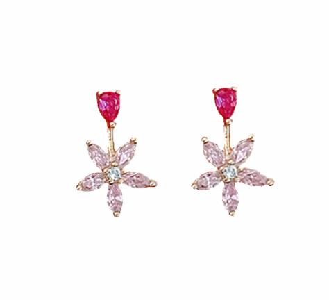 Bông tai hoa kim cương hồng nữ 2022 mới hợp thời trang niche bông tai hoa nhỏ phiên bản Hàn Quốc bông tai zircon nhỏ