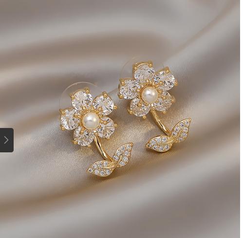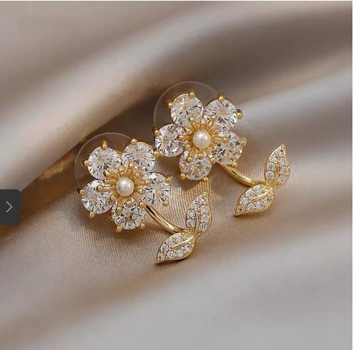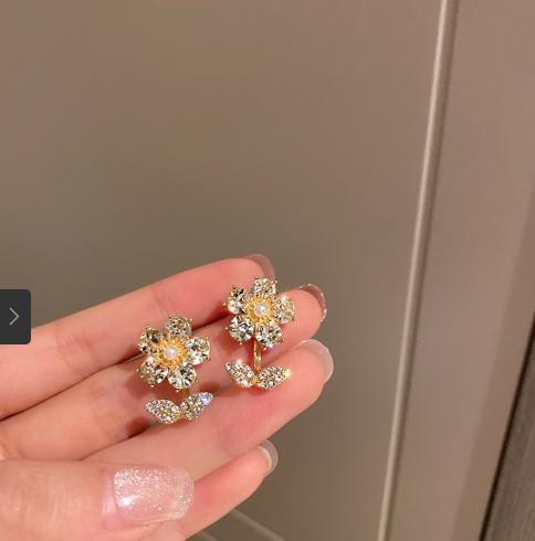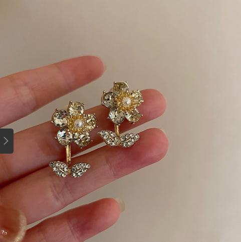 Bông tai hoa đính pha lê lấp lánh làm sáng khuân mặt