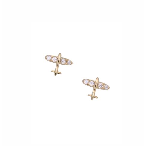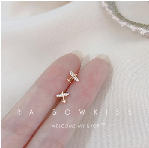 Bông tai máy bay nhỏ 2021 mới hợp thời trang, nhỏ gọn và tinh tế, bông tai sinh viên kim cương đầy đủ, Nhật Bản và Hàn Quốc,