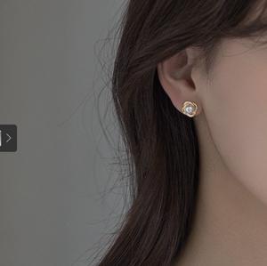 Bông tai ngọc trai đính kim cương xung quanh tạo điểm sáng cho khuân mặt