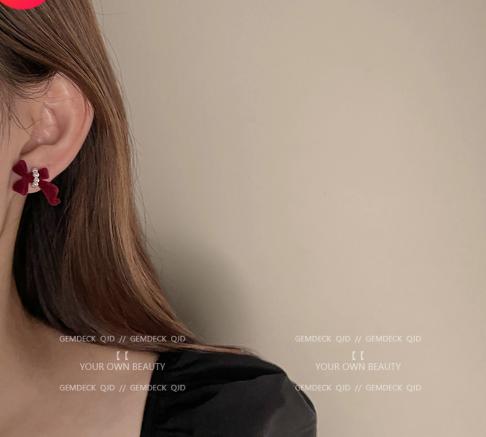 • Bông tai ngọc trai nơ nhung đỏ tía mùa thu / đông năm 2021