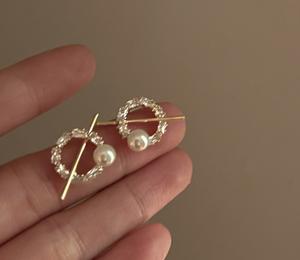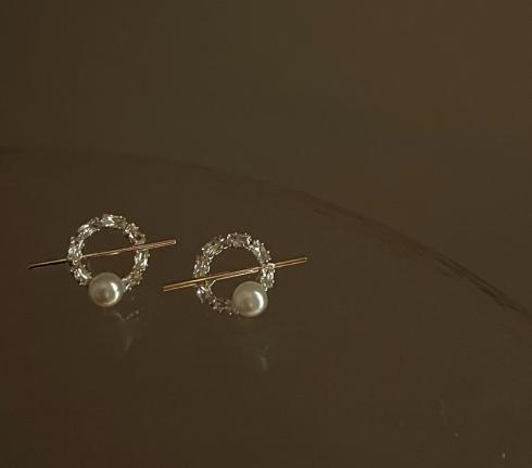 Bông tai ngọc trai zircon cao cấp của Pháp, ánh sáng nhỏ sang trọng, thiết kế tinh tế Đinh tán tai