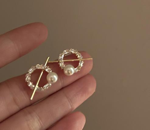 • Bông tai ngọc trai zircon cao cấp của Pháp, ánh sáng nhỏ sang trọng, thiết kế tinh tế Đinh tán tai