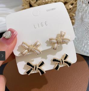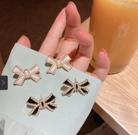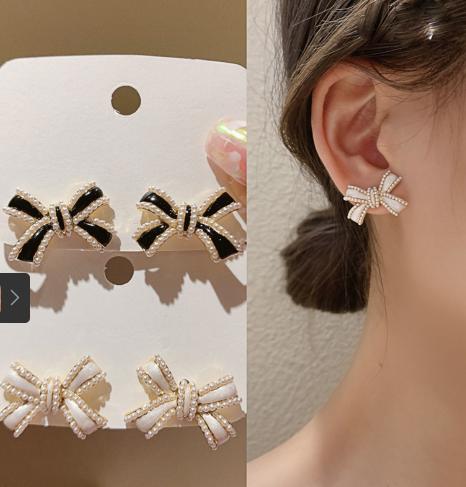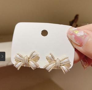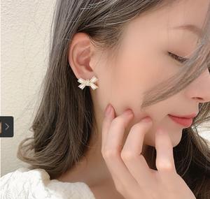 Tên sản phẩm :Bông tai nơ ngọc trai Pháp bông tai cô gái dễ thương và vui tươi 2021 bông tai giọt dầu phù hợp hoàn toàn mới