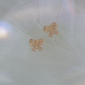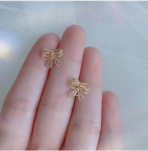 Bông tai nơ ren rỗng nữ trong thời trang lạnh đơn giản và nhỏ bông tai ruy băng nhỏ 2021 new