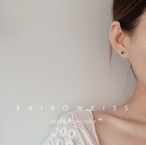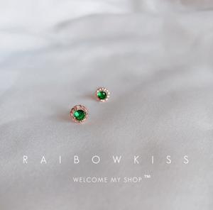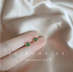 • Bông tai pha lê ngọc lục bảo zircon nữ 2021 mới hợp thời trang mới bông tai hình tròn màu xanh lá cây dát mỏng đơn giản bông tai màu đỏ lưới đơn giản