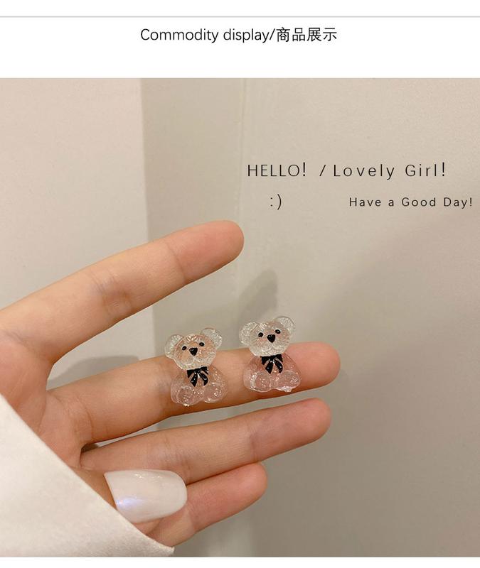 • Bông tai phong cách Hàn Quốc gấu bông Teddy trong suốt