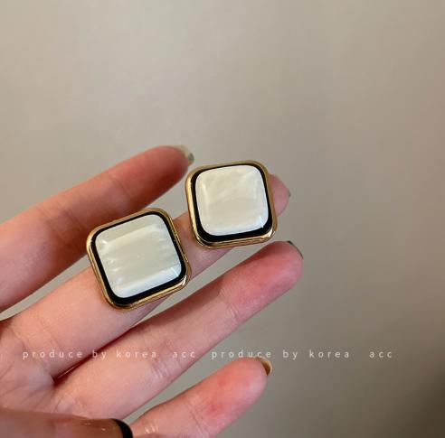 • Bông tai vuông hình học Pháp Mori series in gió bông tai nhựa nhỏ ngọt ngào và dễ chịu Bông tai cao cấp 925 kim bạc