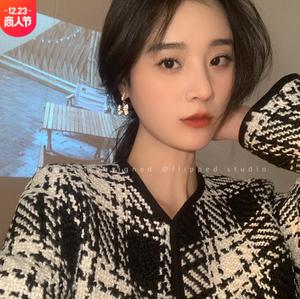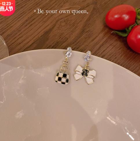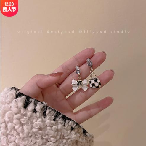 • Bowknot kẻ caro túi bất đối xứng bông tai hoa tai phụ nữ ánh sáng sang trọng cao cấp cảm giác cá tính thời trang thích hợp bông tai