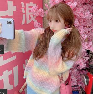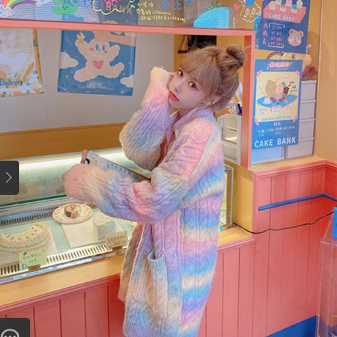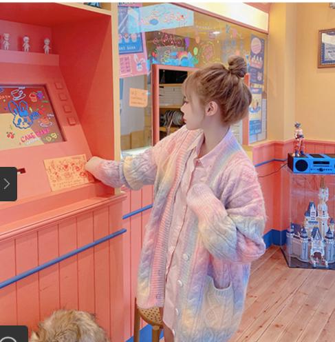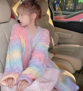 • Cầu vồng mềm Wax len lỏng lẻo của phụ nữ 2021 mùa xuân và mùa thu phong cách mới mặc bên ngoài phong cách lười biếng Áo khoác len đan len Nhật Bản