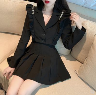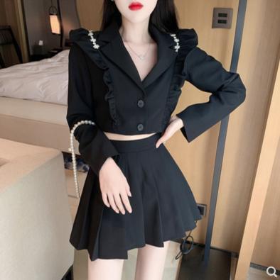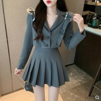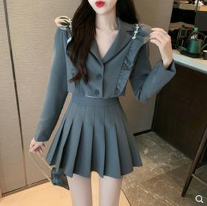 Set váy dạo phố phong cách với áo khoác dáng ngắn và chân váy xếp ly