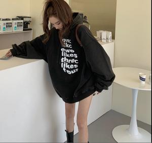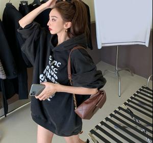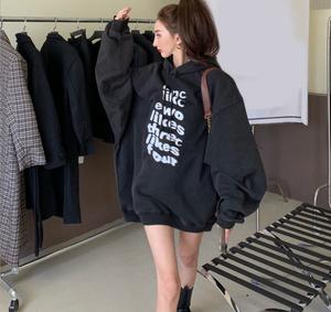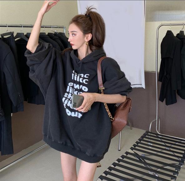 2021 mới đơn giản chữ cái dài giữa phong cách lười biếng áo len nữ có mũ trùm đầu lỏng lẻo áo khoác mỏng nữ trong siêu lửa