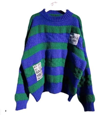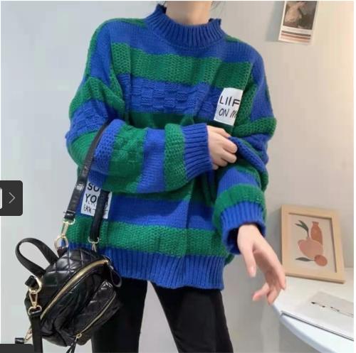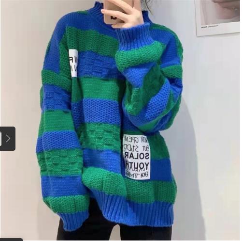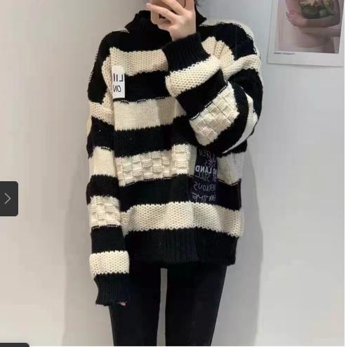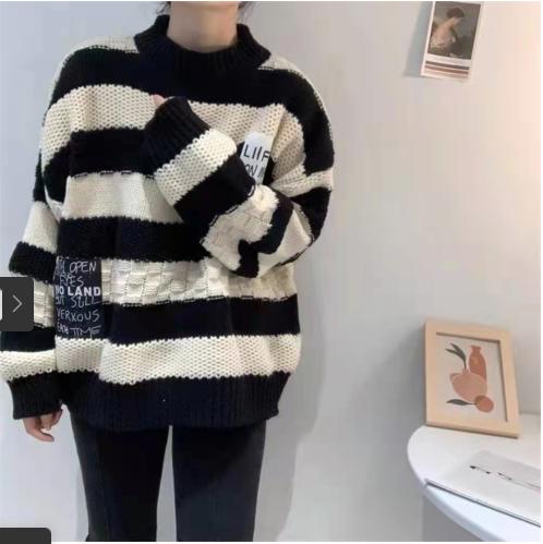 Tên sản phẩm :Dán nhãn màu đen sọc dày len cổ điển áo len dệt kim phụ nữ mùa thu / mùa đông năm 2021 áo len rộng rãi mới áo sơ mi của phụ nữ