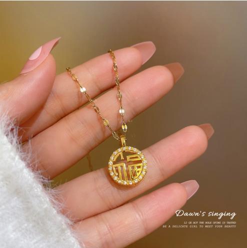 • Fu từ vàng kim cương đầy đủ 2021 dây chuyền xương đòn năm vi dát dây chuyền nữ cao cấp thiết kế mặt dây chuyền vòng cổ