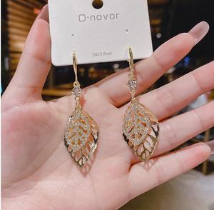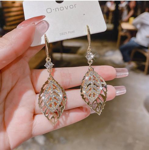 Hàn Quốc Dongdaemun in thiết kế siêu lá chớp hoa tai móc tai tính khí thời trang cá tính lưới hoa tai hoa tai màu đỏ phụ nữ