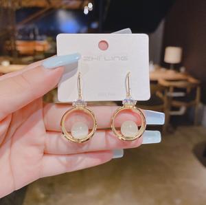 • Hàn Quốc Hoa tai đá opal Dongdaemun nữ tính mùa hè 2021 hoa tai thủy triều mới hoa tai lưới màu đỏ thích hợp