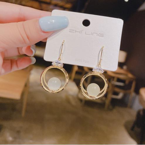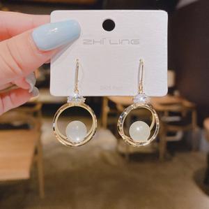 Pháp cao cấp ánh sáng sang trọng dây chuyền hoa tai vòng tròn nữ nữ thần khí chất Hàn Quốc Fan ngọc trai hoa tai nữ mùa thu đông
