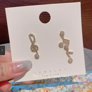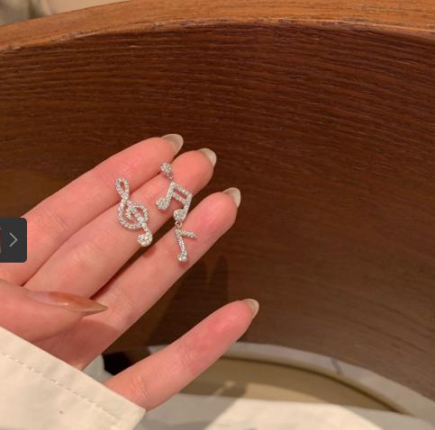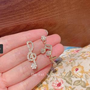 tên sản phẩm :Hàn Quốc thiết kế bất đối xứng cảm giác bông tai nốt nhạc đầy đủ kim cương bông tai khí chất Dongdaemun Hàn Quốc bông tai thiết kế thích hợp