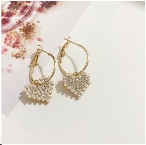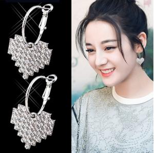 Bông tai phong cách hàn quốc với trái tim được đính đá sáng lấp lánh làm sáng khuân mặt và là điểm nhấn cho bộ đồ