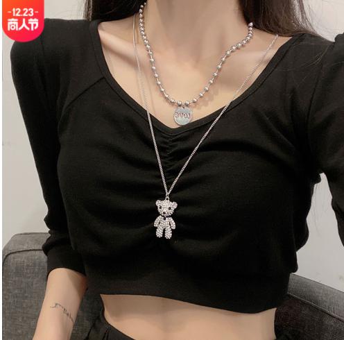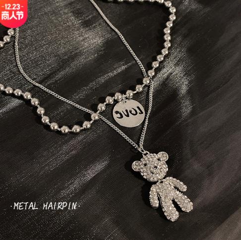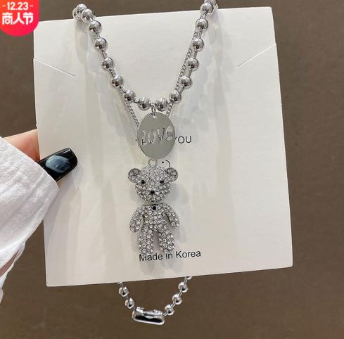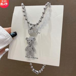 • Hàn Quốc titan thép đầy đủ kim cương gấu net người nổi tiếng vòng cổ nữ gió lạnh tính khí net người nổi tiếng hip hop mặt dây chuyền áo len cá tính xu hướng